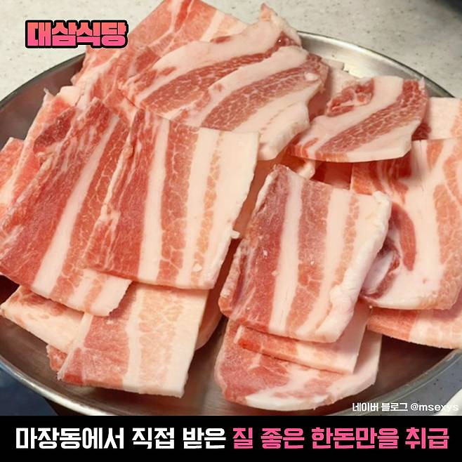 마장동에서 고깃집을 하는 부모님으로부터 질 좋은 한돈만을 사용한다는 이곳, 바로 대삼식당입니다. 몇 년 전 수요미식회에도 등장했던 냉동삼겹살 맛집!