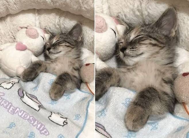 반면 아기 고양이는 그저 깊게 잠들어서 집사가 자기를 위해 이불을 덮어준 사실도 모른 채 쿨쿨 잘 뿐이었는데요. 잠든 모습이 어쩜 이렇게 귀여울 수 있을까요.
