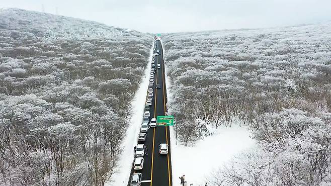 한라산을 가장 가까이에서 마주할 수 있는 이 길은 겨울이 되면 국내외 관광객들의 발길이 끊이지 않는 제주 대표 드라이브 코스로 변신합니다.