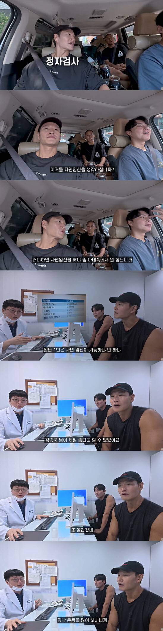 의사는 "검사 결과 종합을 해보면 (김종국이)정자 개수가 현저하게 많아서, 김종국 님이 제일 좋다고 할 수 있다"고 밝혔다.
