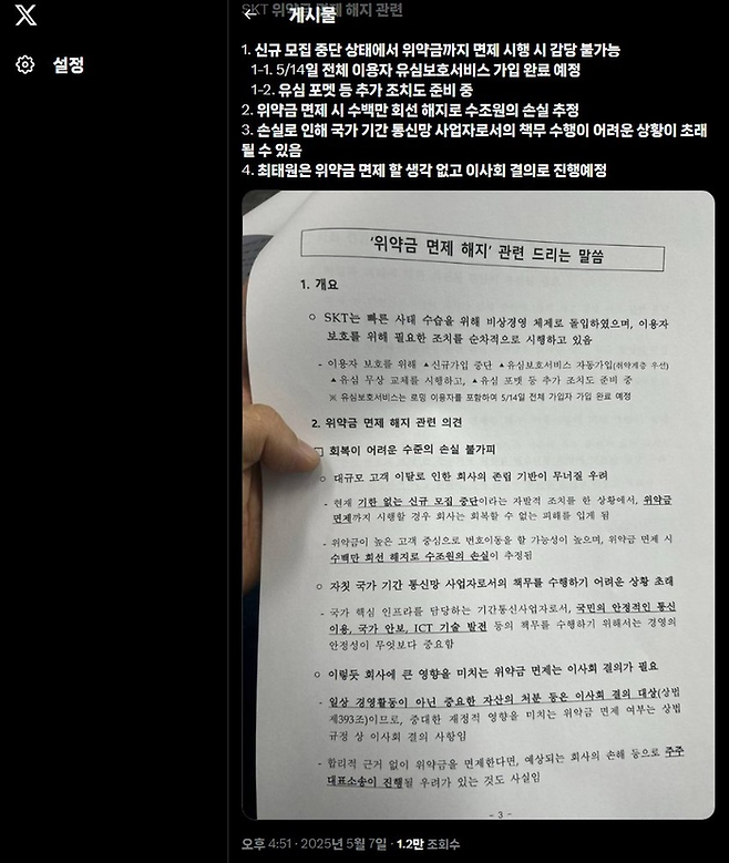 SKT는 위약금을 면제하면 최대 500만 명 이탈,