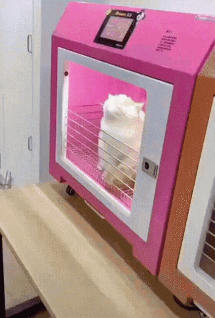 샤오미에서 만든 펫 드라이룸이에요. 이 제품은 내부 온도가 42도 이상이면 자동으로 꺼진다고 해요. 그래서 고양이가 숨쉬기 힘들어하는 일이 없고, 안전하답니다.