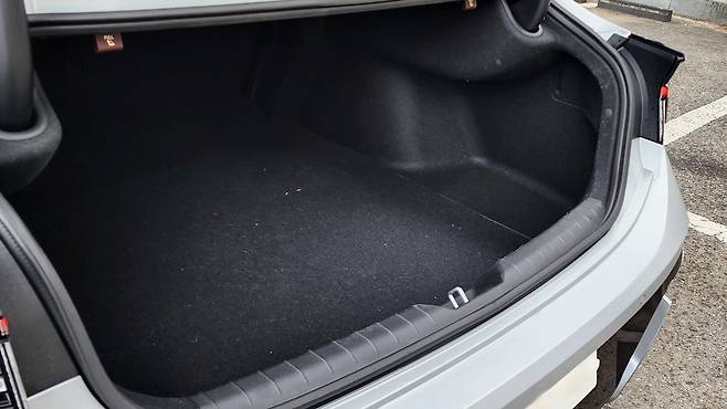 뒷좌석이다. 전륜구동 세단답게 레그룸은 넓은 편이다. 헤드룸도 생각보다 여유로웠다. 전반적으로 시트 등받이가 기울여져잇는 타입이다. 시트에도 퀄팅 패턴이 그려져있어 나름대로의 고급감이 있다. 편의 장비로는 에어벤트가 있고, 컵홀더 암 레스트와 수동식 선 셰이드, 그리고 뒷유리에 전동식 롤러 블라인드가 채택된다. 파노라마 선루프도 개방감을 극대화해주는 요소다. 2열 시트는 폴딩이 가능하며, 전동트렁크는 평탄한 공간을 확보하고 있다. 트렁크 매트 아래에도 나름대로 쓸만한 공간이 있었다.