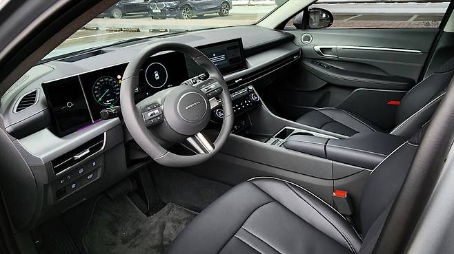 시승차량은 쏘나타 하이브리드 2.0 HEV 인스퍼레이션 트림이다. 하이브리드 모델이라서 고성능보다는 지속가능성에 초점을 지닌 차종이다. 기존과 같은 2.0L급 자연흡기 GDI 엔진과 구동모터와 병렬 배치된 6단 자동 변속기가 결합된다. 인스퍼레이션은 풀 패키지 모델, 실내에는 12.3인치 병렬 와이드 디스플레이를 채택했고, 차세대 인포테인먼트 CCNC와 OTA를 지원한다. 고급 편의장비로 HUD, 리어 선블라인드, 운전석 메모리 시트, 파워 스마트트렁크 등이 적용되어 있으며, 추가 옵션으로 BOSE 오디오와 파노라마 선루프를 선택할 수 있다. 2025년형 연식변경 이후 지문 인식 센서의 위치가 센터콘솔오 옮겨진다.