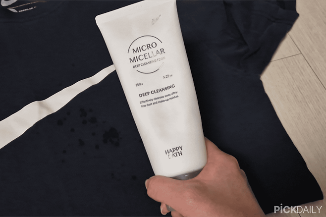 기름 자국이 생긴 부위에 폼클렌징을 짜고 비벼 옷감에 흡수 될 수 있도록 해준다. 이후 물을 소량 묻혀 거품을 내주며 한 번 더 비벼준다. 깨끗한 물에 헹궈주면 옷에 튄 기름 자국을 없앨 수 있다.