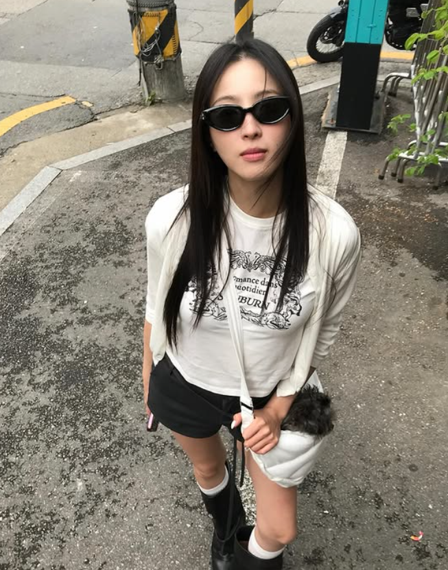 정혜성 님의 이번 룩은 힙하면서도 캐주얼한 매력이 넘치는 스타일이었어요. 프린팅 티셔츠와 짧은 숏팬츠를 활용해 트렌디하면서도 여유로운 무드를 연출했죠.
