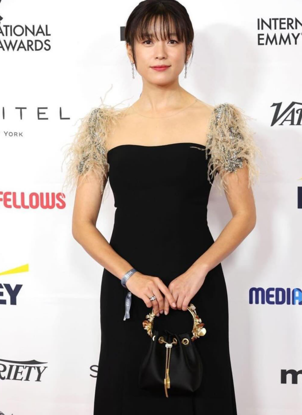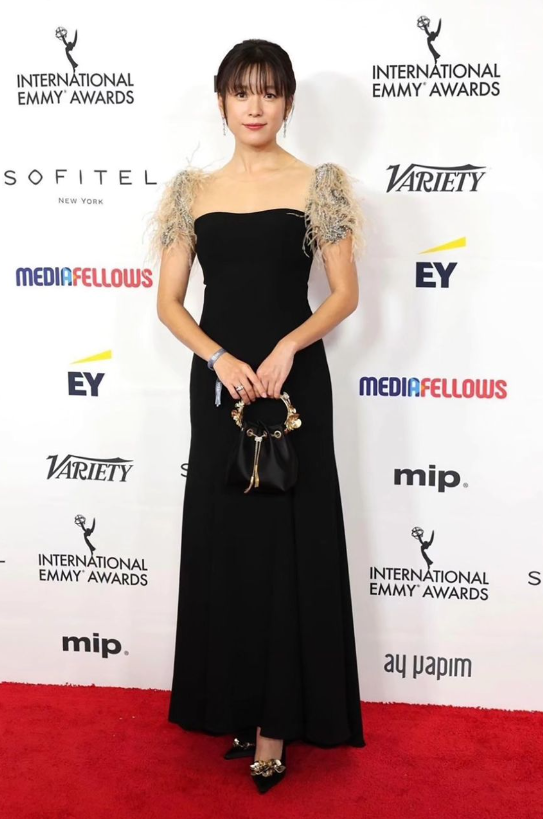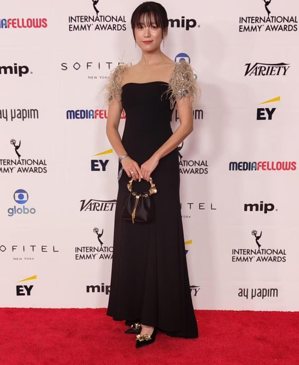 한효주는 블랙 드레스에 골드 체인이 달린 토드백으로 고급스럽고 우아한 자태를 뽐냈다.