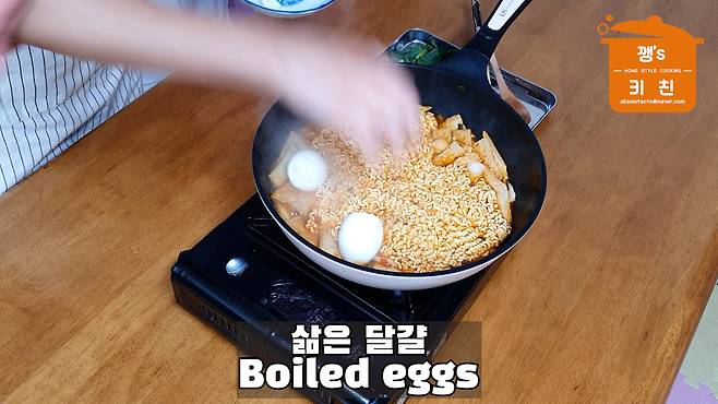 3. 물이 끓으면 떡국떡과 건더기 스프,