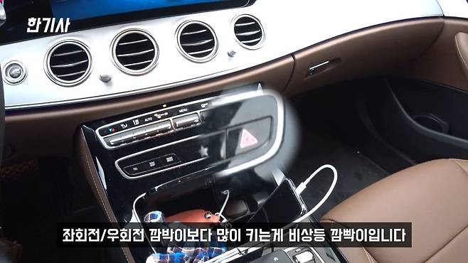 또 비상 깜빡이가 보통 가운데 있잖아요. 근데 이 차는 좀 멀리 있거든요. 손 뻗기에 멀어 보이긴 하는데, 전혀 힘들 건 없어요. 제가 유일하게 제일 잘 누르는 단추가 이 비상등 깜빡이거든요. 좌회전, 우회전 깜빡이보다 많이 켜는 게 비상등 깜빡이입니다. 그냥 도로에서 그냥 '스미마셍' 하고 다녀요. 왜냐면 너무 운전을 못해서 바로 비상 깜빡이 누를 준비를 항상 하고 있죠.