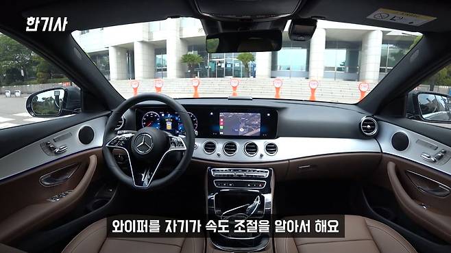 그리고 반자율주행이라고 있다는데, 반자율주행도 솔직히 좀 달려 봐야 쓰는 거라 솔직히 안 쓰는 기능이 많죠. 반자율주행이 원래는 좀 높은 등급이나 높은 트림에만 있었는데, 이번에 E클래스에 또 들어간 거거든요. 시계를 빼앗고 반자율을 넣어 주신 거군요.