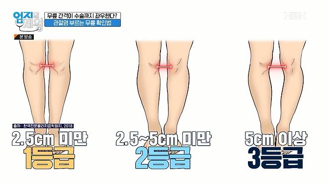 무릎 사이 간격을 측정했을 때