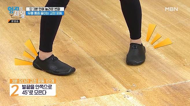 1. 발 끝을 안쪽으로 45도가 되도록 모으고