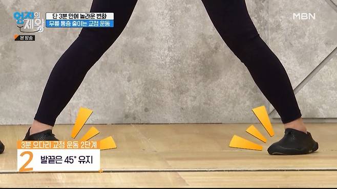 1. 발 끝을 안쪽으로 45도가 되도록 모으고