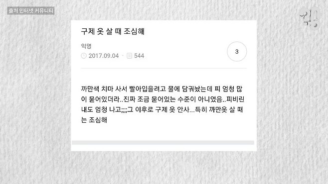 또, 최근 빈티지 상품은 판매 전 세탁이 필수 과정으로 자리잡혔다는데, 세탁 후에도 남아있는 오염은 가까이에서 촬영해 구매자에게 사전 고지 하거나, 소비자가 새 상품처럼 느낄 수 있도록 옷에 어울리는 향기를 입혀 포장하기도 한다.