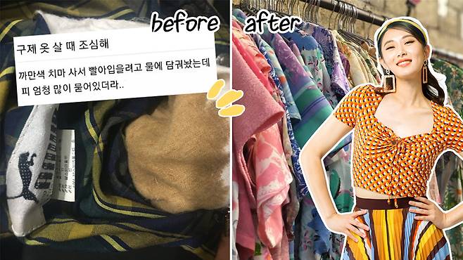 또, 최근 빈티지 상품은 판매 전 세탁이 필수 과정으로 자리잡혔다는데, 세탁 후에도 남아있는 오염은 가까이에서 촬영해 구매자에게 사전 고지 하거나, 소비자가 새 상품처럼 느낄 수 있도록 옷에 어울리는 향기를 입혀 포장하기도 한다.