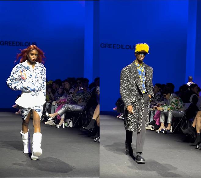 이번 그리디어스 컬렉션 콘셉트는 ‘스노우폴 아프리카’였습니다. 겨울에 아프리카, 그리고 스노우폴이라니! 평소 그의 유머러스한 센스가 옷에도 그대로 묻어납니다. 유니크한 디자인에 강렬한 컬러감으로 비욘세, 패리스 힐튼 등 ‘스타들이 좋아하는 디자이너’로 유명한 그는 이번에는 아프리카의 전통 아트와 기법에서 영향을 받은 패턴과 컬러로 더욱 다채로운 컬렉션을 선보였습니다.