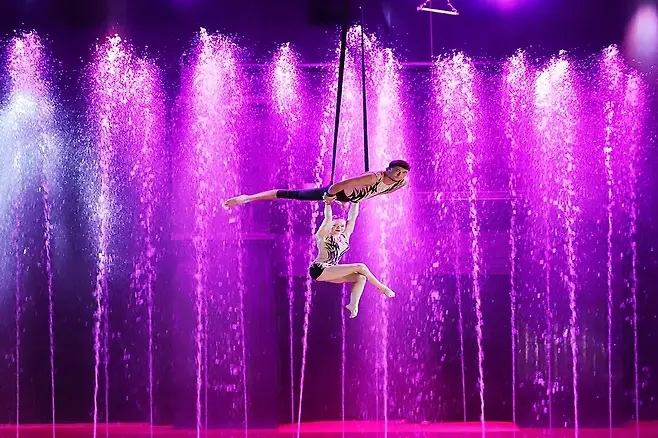 중문 관광단지 내에서 펼쳐지는 스카이워터쇼는 거대한 수영장 무대를 활용한 예술 공연으로, 화려한 분수와 다이빙 퍼포먼스가 압권입니다. 물줄기가 높이 솟구치는 연출과 무대 특유의 경쾌한 음악이 어우러져, 마치 해외의 유명 쇼를 제주에서 감상하는 듯한 기분을 느낄 수 있습니다.