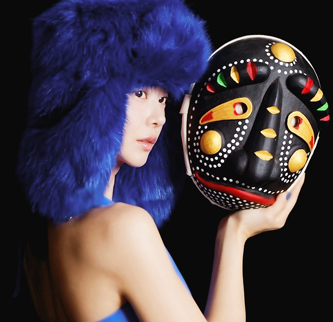 이주빈은 파란 털모자를 활용해 강렬한 인상을 남긴 스타일링부터, 기품이 넘치는 실크 드레스, 데님 룩 등의 의상과 가면 소품을 자유자재로 활용하며 트렌디하게 소화했다.