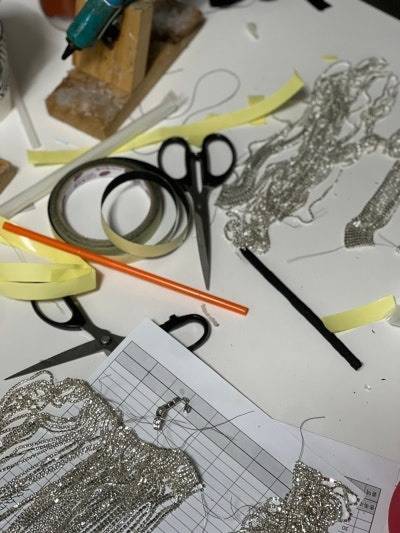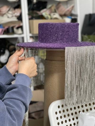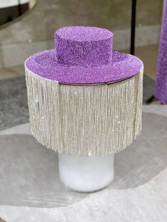 이후, 한 땀 한 땀 장인 정신으로 비즈들을 이어 모자에 달아주었습니다. 💜 500개가 넘는 비즈들과의 싸움 끝에 특별한 모자가 완성되었습니다!
