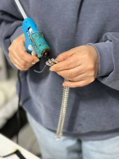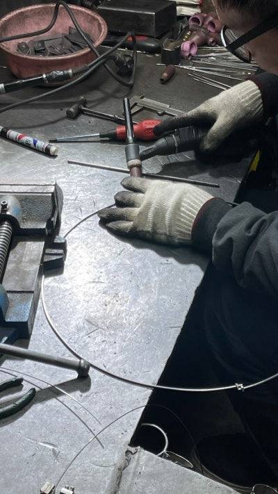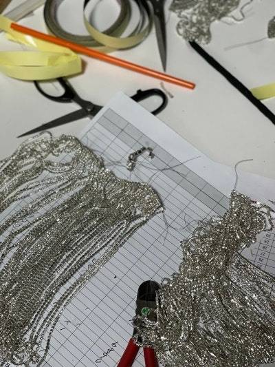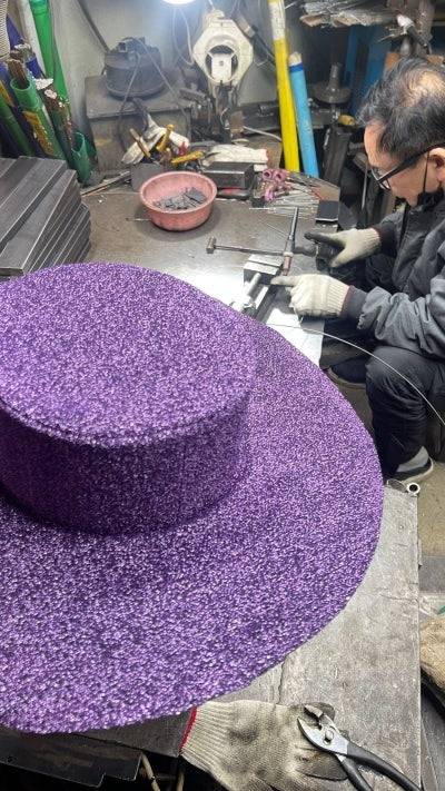 이제 남은 것은 모자! 먼저 모자의 틀을 제작했습니다. 비즈 수술이 충분히 들어갈 만큼 창의 폭을 넓히고, 머리가 들어가는 부분은 스퀘어 디자인으로 페도라를 만들었습니다. 그리고 그냥 장식을 다는 것이 아닌, 열고 닫을 수 있도록 용접 작업까지 추가되었습니다. 🫢