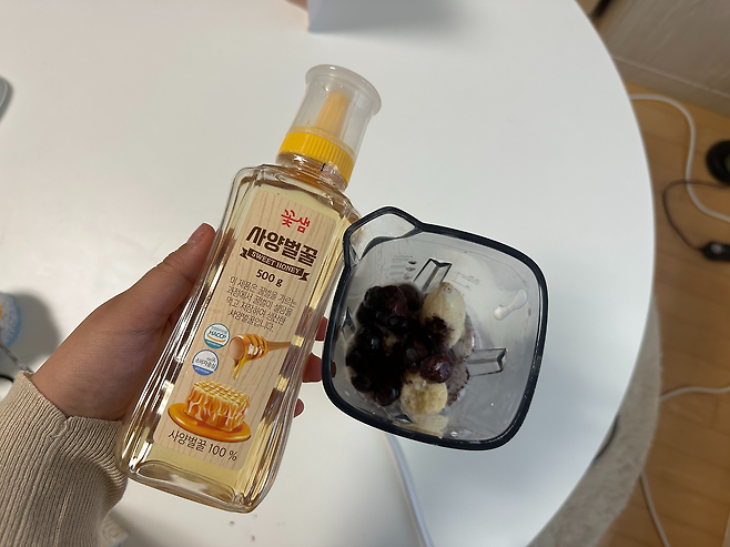 ③ 적당한 달달함을 위해, 꿀을 한바퀴 둘러줍니다. 취향에 따라 꿀의 양은 조절해주세요!