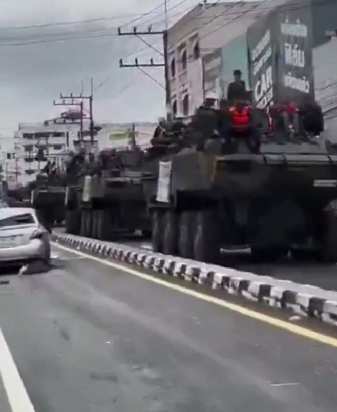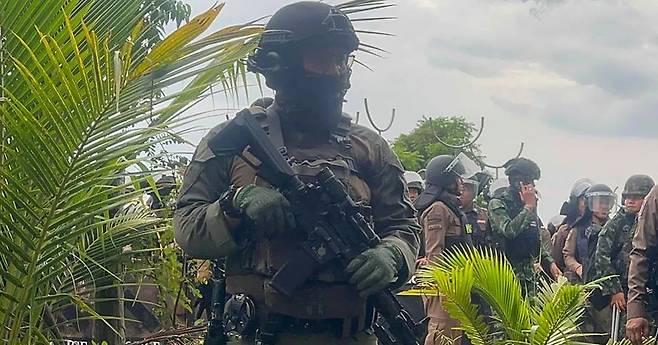 지상 공세: 태국 지상군은 M1126 스트라이커 장갑차 여단을 앞세워 캄보디아 국경 검문소를 함락하고 태국 국기를 게양한 뒤, 철조망과 방어 시설을 설치하며 점령지를 굳건히 하는 모습이 확인되었습니다.