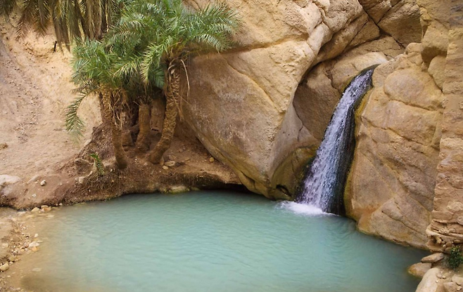 Chebika Oasis는 튀니지 고원지대에서 평지로 이어지는 부분에 위치하는 산록 오아시스로 '체비카'는 아라비아어로 "태양의 성" 이라는 뜻을 가지고 있습니다. 이곳은 영화 ‘잉글리시 페이션트’ 와 스타워즈 4편 촬영지로도 유명하며 오아시스 인근에 Qasr el-shams라는 건물 유적이 위치하고 있습니다.