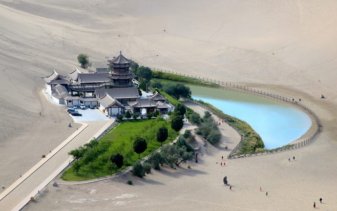 월아천은 중국 간쑤성 둔황시의 남서쪽 5㎞에 있는 초승달 모양의 작은 오아시스로 남북의 길이가 약 150m, 폭이 약 50m 정도의 오아시스입니다.