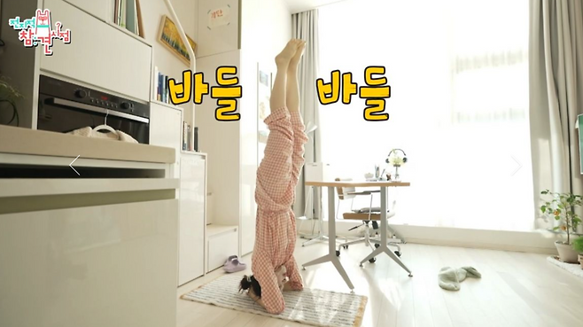 매일 아침 물구나무 서기를 실천하는 김아영.이는 단순한 운동이 아닌 정신집중, 코어 단련, 혈액순환 촉진의 비결입니다.