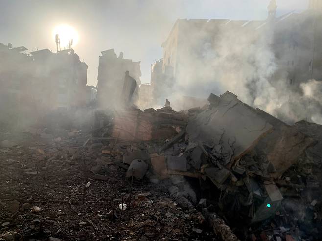 | ▲ 11일(현지시간) 레바논 수도 베이루트 남부 교외에 있는 건물이 이스라엘의 공습으로 파괴된 모습. |