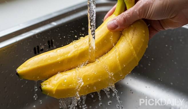 바나나 사오면 바로 물로 헹궈주는 것이 좋습니다. 껍질에 잔류 농약이 많이 남아있거든요. 물로 씻으면 손에 묻는 걸 어느 정도 방지할 수 있어요.