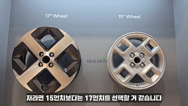 한편, 캐스퍼 일렉트릭은 15인치와 17인치 두 가지 휠을 옵션으로 제공한다. 15인치 휠이 보다 효율적일 수 있지만, 17인치를 선택하면 한층 강렬한 주행 감각을 맛볼 수 있을 것으로 예상된다.