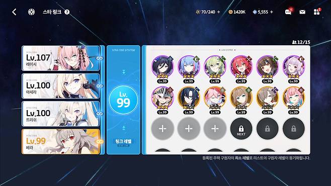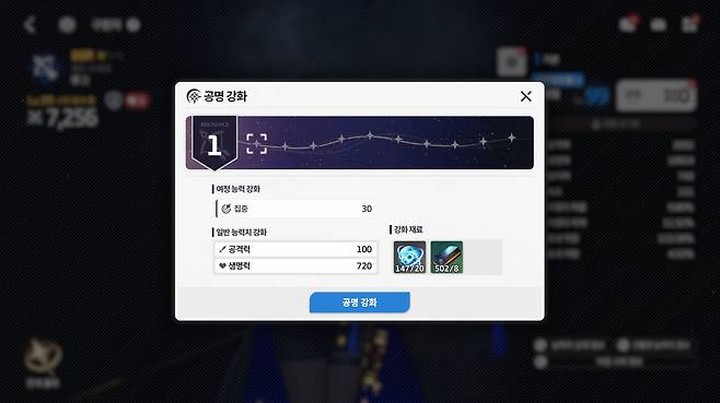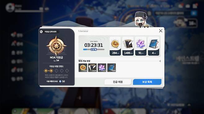 그렇지만 스타세이비어는 여기에 다른 장르의 요소까지 포함해 각종 브레이크로 걸어두는 바람에 그 모델의 장점을 확실히 못 살리고 있습니다. 일단 캐릭터 레벨업을 위한 재화는 대부분 방치형인 지원금 혹은 성간회랑이나 스테이지를 깰 때마다 얻을 수밖에 없는데, 그 양이 점점 늘어나서 레벨업이 멈추는 주차 구간이 발생하죠.