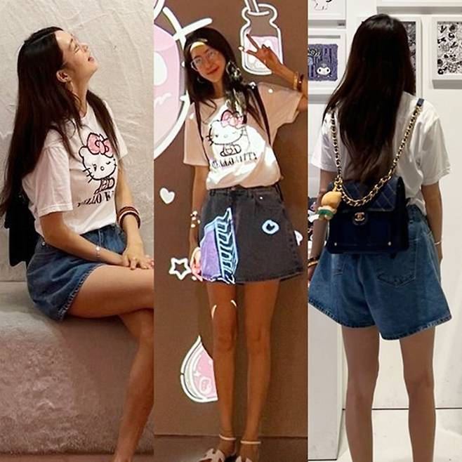 공개한 사진에서 이요원은 헬로키티 캐릭터 티셔츠에 데님 반바지를 입고 블랙 백팩을 어깨엔 멘 팝업매장 나들이룩으로 10대 같은 스타일을 선보여 눈길을 끌었다.