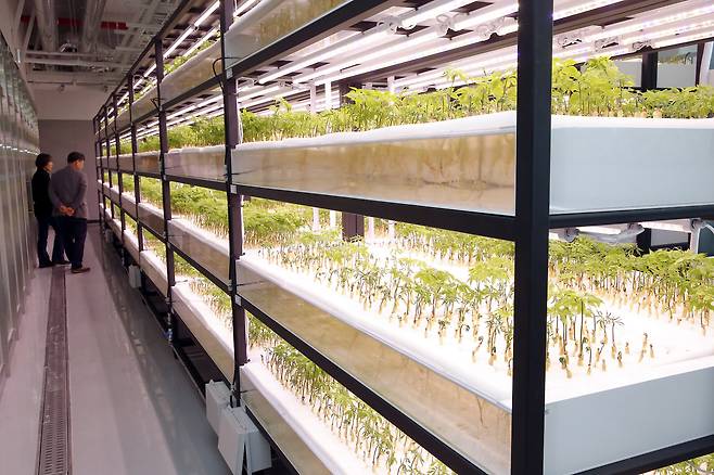 공장에서 주로 재배하는 작물은 새싹 인삼이다. “아쿠아포닉스 기술로 새싹 인삼을 재배했을 때 토경에서 재배한 새싹 인삼과 비교해 사포닌 함량이 2배에 달합니다. 인삼은 6년근일 때 영양 성분이 가장 극대화된다고 알려져 있는데요. 6년근 인삼과 비교해도 희귀 진세노사이드 함량이 8배 많은 것으로 나타났습니다.”