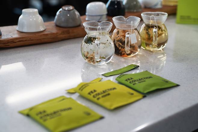 다만 새싹 인삼의 특성상 수확 후 몇 주 뒤면 시들어버려 그 전에 활용할 방법을 찾아 나섰다. “새싹 인삼을 주재료로 한 티백을 개발하기로 했습니다. 아침·점심·저녁을 위한 차라는 콘셉트를 잡았어요. 새싹 인삼에 황칠, 보이찻잎, 흑하랑 상추를 배합했죠. 원하는 맛과 향을 내기 위해서 4차례 재배합하기도 했습니다. 약 8개월 정도 시행착오를 거친 끝에 ‘새싹 인삼 티 컬렉션’을 완성했어요. 차를 우려낸 다음엔 티백 안의 내용물을 씹어서 먹는 것도 권합니다. 새싹 인삼을 그대로 섭취할 수 있기 때문이죠.”