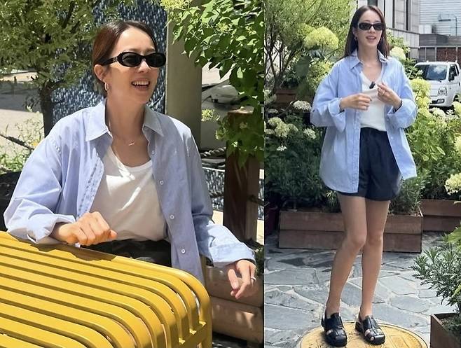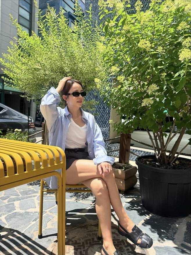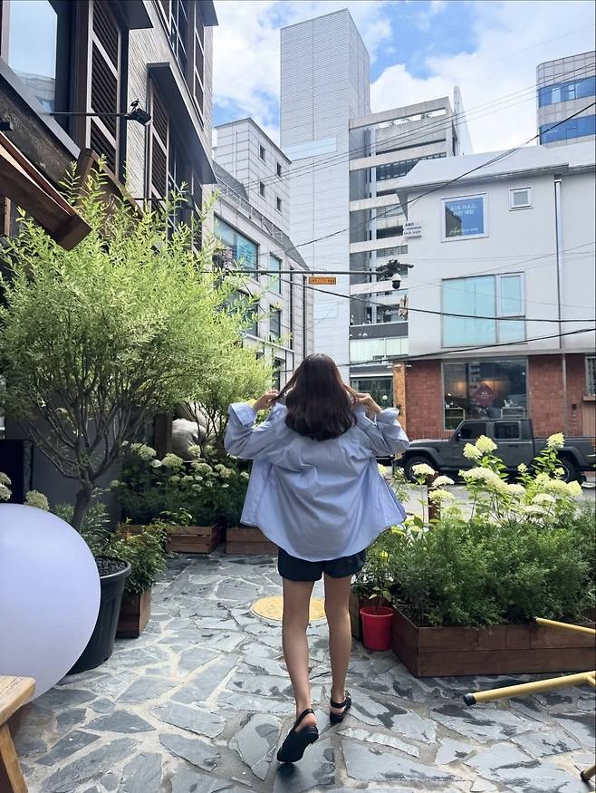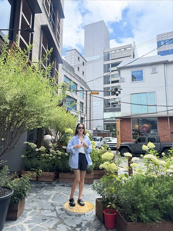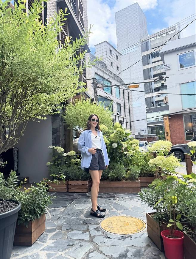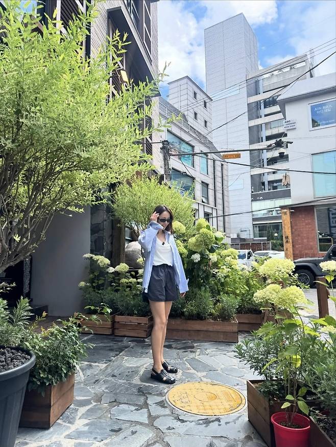 박은영이 여름 도심 속에서 캐주얼하면서도 세련된 데일리룩을 선보였습니다.