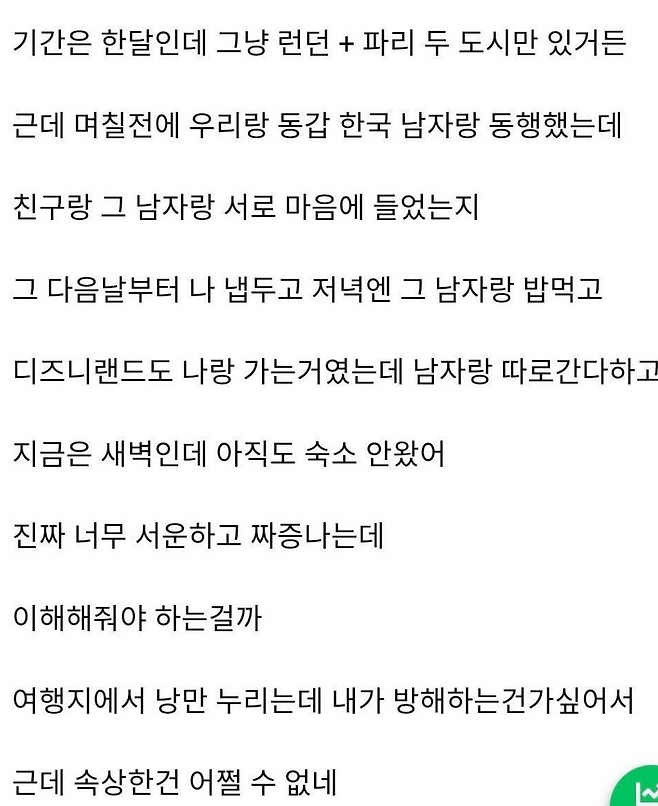 친구랑 여행왔는데 친구가 다른 남자랑 다녀...