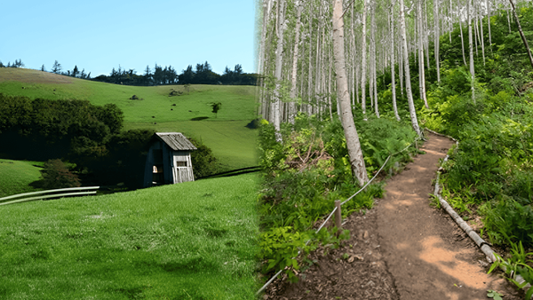 완만하게 이어지는 목장 길을 따라 걷다 보면 계절이 바뀌는 초원의 표정을 가까이서 느낄 수 있습니다. 4월 초에는 아직 완전한 녹음이 짙기 전이라 부드러운 색감의 언덕과 하늘이 잘 어우러져 더욱 담백하고 예쁜 풍경을 만들어내는데요. 높은 곳에서 내려다보는 장면은 물론, 길을 따라 걷다 마주하는 소소한 시선까지도 충분히 사진으로 남길 만한 가치가 있습니다.