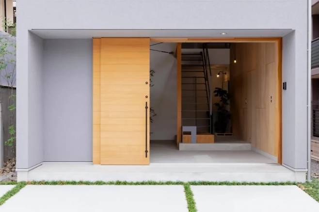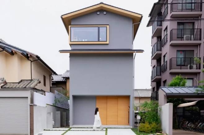 일본 교토의 한적한 주택가 중심에 위치한 이 집은 처음부터 남다른 분위기를 풍긴다. 회색으로 마감된 깔끔한 외관은 도시적이면서도, 정면의 입구는 창고를 연상시키는 투박함이 있다. 그러나 이 투박함은 고의적으로 설계된 것이다.