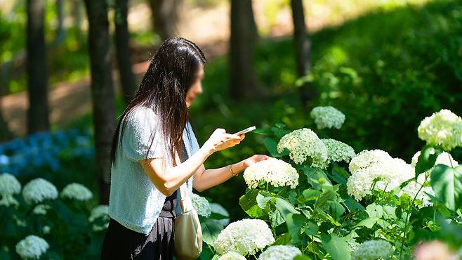 수국이 활짝 핀 숲길을 걷다 보면, 마치 동화 속 정원에 들어온 듯한 기분이 든다.