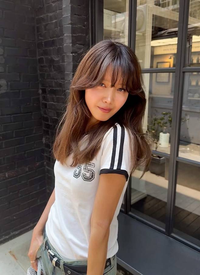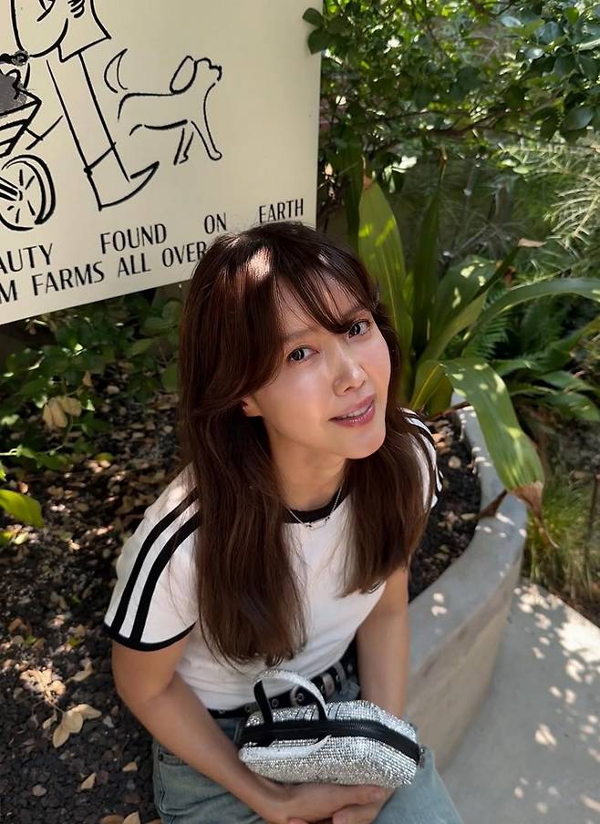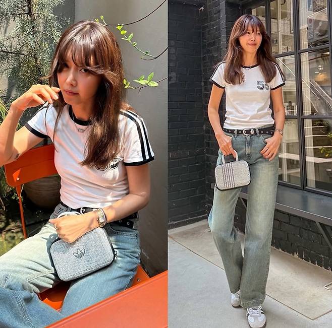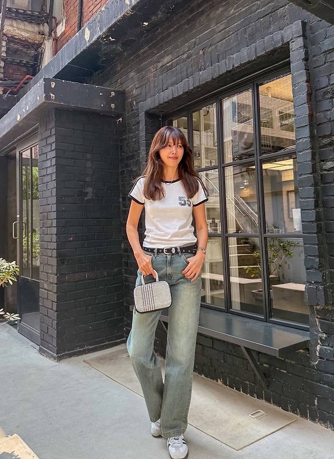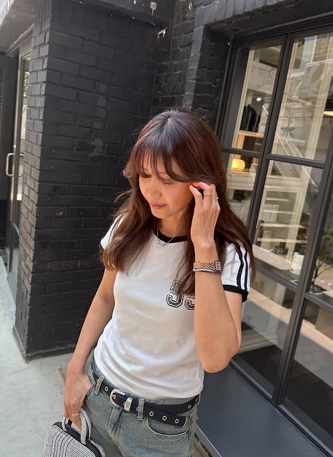 배우 채정안이 두줄 반팔 티셔츠로 힙한 데일리룩을 완성했다.