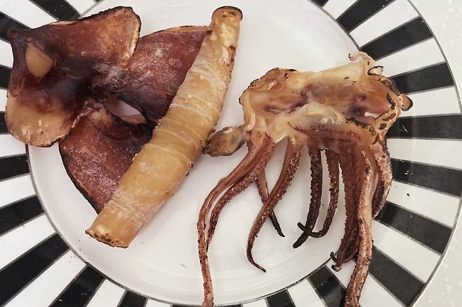 오징어 옆면을 봐도 건오징어와 다르게 뭔가 통통해진 느낌이에요.