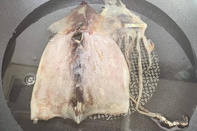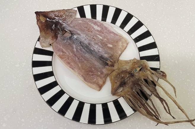 오징어 옆면을 봐도 건오징어와 다르게 뭔가 통통해진 느낌이에요.