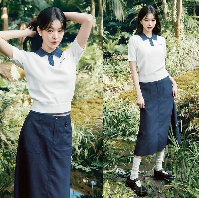 장원영은 아웃도어 패션 브랜드 아이더와 함께 한여름에도 시원하게 입을 수 있는 냉감 데님 웨어 '아이스온 에어 데님(ICE ON AIR DENIM) 시리즈'를 선보였다.