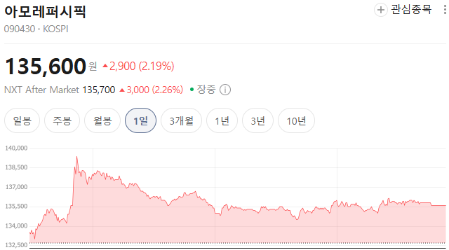 아모레퍼시픽의 주가는 전 거래일 대비 무려 24.91% 폭락한 12만 4,500원에 장을 마감했다.
