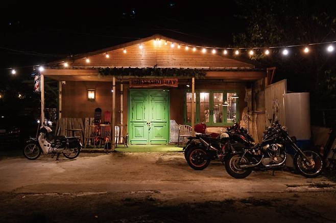 카페 입구에 다다르자마자 클래식의 향기가 물씬 풍긴다. 미국 유타의 어느 산 중턱의 산장처럼 꾸며진 카페 외관이다. 예전 할리데이비슨 모터사이클 특유의 말발굽 소리에서 영감을 얻어 카페 이름을 ‘Horseshoe Bay’라고 지었다고 한다. 빈티지한 콘셉트로 안과 밖을 꾸며 놓았다.