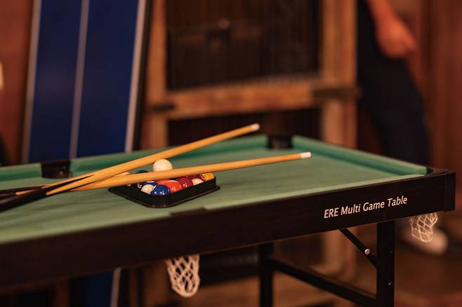실내에는 아기자기한 앤티크 소품과 가구로 가득하다. 거기에 노란 조명이 조용하고 편안한 실내 분위기를 더한다. 한편에는 귀여운 미니 포켓볼 당구대가 있어 나만의 아지트에 들어온 느낌도 든다. 감성에 흠뻑 젖어 휴식을 취하고 있자니 밖에서 스멀스멀 들어오는 모기향마저 인센스로 착각했을 정도다.
