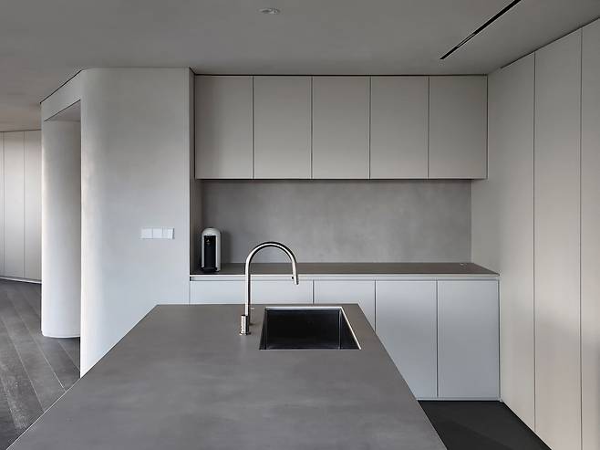 전체적으로 차분하고 은은한 무드를 연출하였고, 미니멀한 장면을 위해 보이지 않는 많은 디테일들이 적용되었다. 수전과 가전기기들 또한 비슷한 톤으로 배치하여 완성도를 높였다.