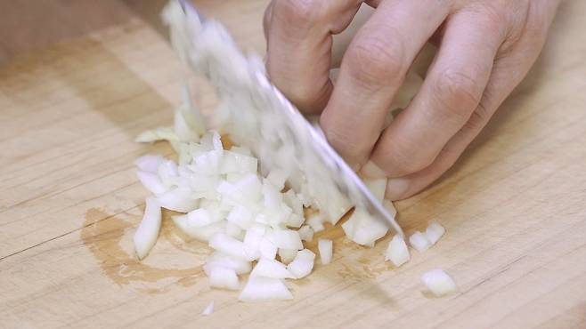 숙성되는 시간 동안 양파를 잘게 썰어 준비하세요.